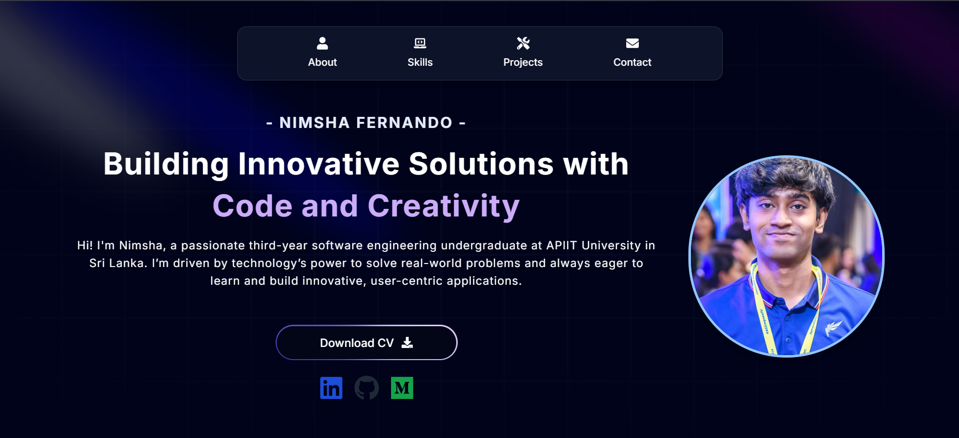 Hi! I'm Nimsha, a passionate third-year software engineering undergraduate at APIIT University in Sri Lanka. I’m driven by technology’s power to solve real-world problems and always eager to learn and build innovative, user-centric applications.