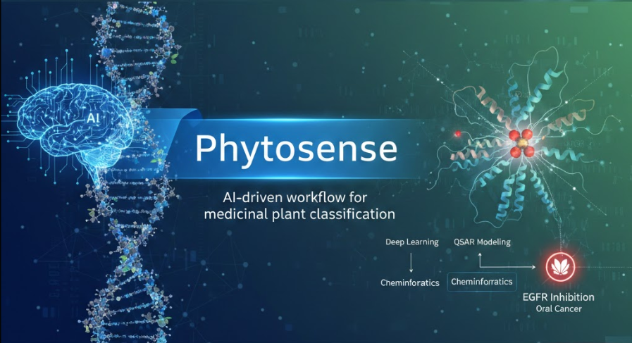 AI-driven workflow for medicinal plant classification using deep learning, QSAR modeling, and cheminformatics to predict EGFR inhibition potential for oral cancer.